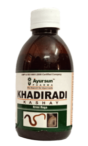 - Khadiradi kashayam is an herbal formulation made from acacia catechu and other herbs. The main ingredient is acacia catechu. This formulation aids in treating worm infestations etc. Also, this medicine helps in balancing kapha and pitta.